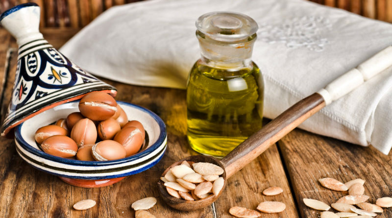 El aceite de argán tiene un alto contenido en vitamina E y ácidos grasos, que ayudan a suavizar, hidratar, revitalizar y proteger la piel, el cuero cabelludo y el pelo; además, impide que se oxiden las células de la piel.